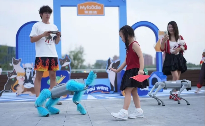 无独有偶,以占地300亩的南大中央公园为主场景的“游园趣展”也遵循类似的发展逻辑。其巧妙地将科技体验融入自然生态。大疆机甲对战、咖啡与冰淇淋机器人服务、萌宠嘉年华等活动人气高涨。值得一提的是,AR互动元宇宙装置的加入,让游客通过手机或AR设备,与虚拟场景、信息进行互动,在真实的公园环境中叠加了丰富的数字艺术层,创造了“科技+自然”的混合现实体验,使绿色低碳、人与自然和谐共生的理念以更鲜活、有趣的方式深入人心。