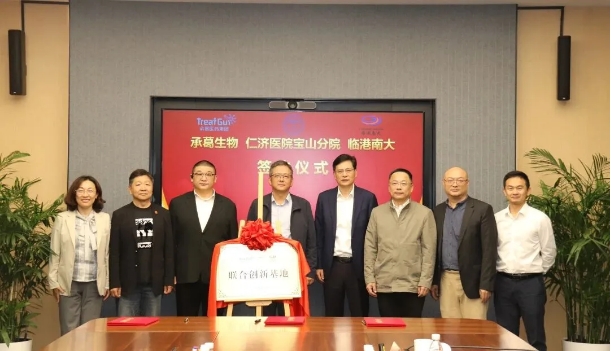 10月28日,承葛生物、仁济医院宝山分院、临港南大公司举行战略合作签约,“联合创新基地”正式落地南大智慧城。宝山区科委主任刘新宇,承葛生物首席运营官姚恩峰,仁济医院宝山分院执行院长张斌渊,临港南大公司总经理施军明、副总经理王佳迪等相关领导出席。