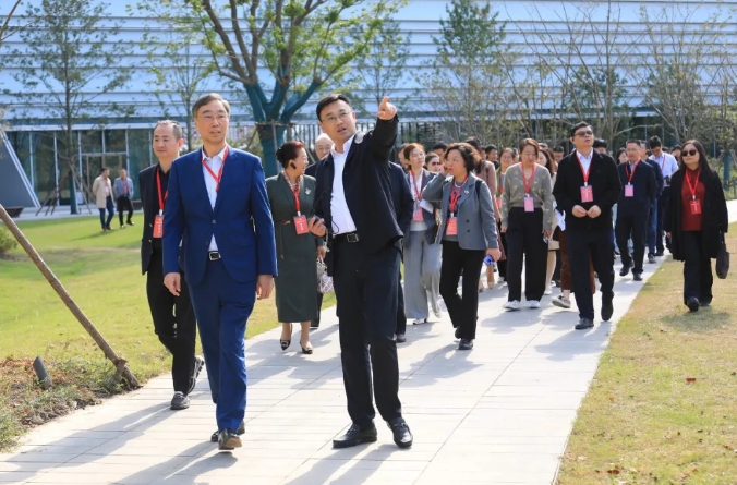 穿过“科创之门”,委员们步入已基本完工的南大中央公园,沉浸式体验“水林复合”的生态设计理念、“挖湖堆坡、蓝绿交融”的空间重塑策略,听取公园打造自然生态、智慧科技、文化体验与运动休闲于一体的“城市绿芯”的有关情况,感受产城融合的生态人文“温度”。