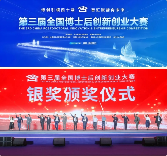 第三届全国博士后创新创业大赛是由人力资源社会保障部、福建省人民政府主办的全国性赛事,是中国博士后制度实施以来规模最大、覆盖面最广的全国性博士后赛事。赛事以“博创引领四十载 智汇赋能向未来”为主题,设置创新赛、创业赛、海外境外(“一带一路”)赛和揭榜领题赛四个组别,覆盖新一代信息技术与人工智能、高端装备制造与机器人、新能源与节能环保等七大产业赛道。2025年3月启动以来,共吸引46支代表队、1700余个项目参赛,我区上海承葛生物科技有限公司荣获生物医药与大健康赛道银奖!该赛道全国仅2名金奖、4名银奖。