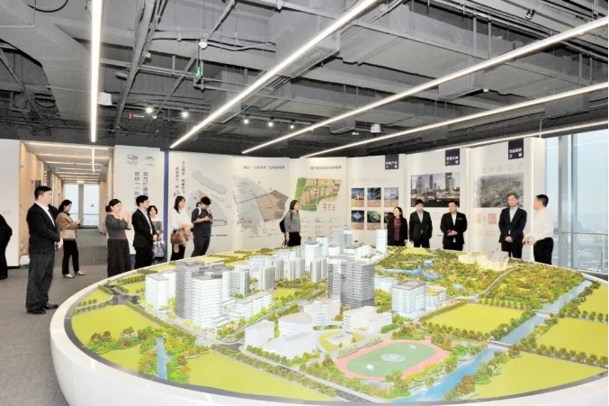 在南大开发建设有限公司,参访团一行通过观看宣传片、听取情况介绍、俯瞰南大开发现状等方式,对南大区域转型蝶变的前世今生和当前的开发建设情况,特别是南大智慧城加速打造宝山产城融合新典范、“北转型”发展核心承载区的有关情况有了全方位、沉浸式的认识。