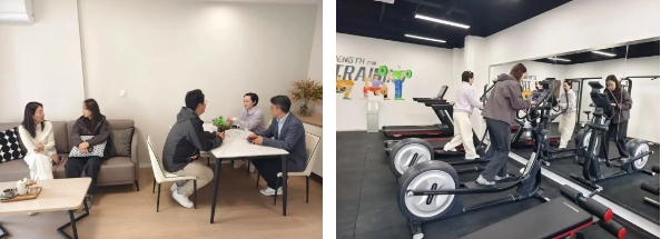 临港南大人才社区项目经理表示:“房型比较小的房间,可以邀请朋友到公共餐厅来一起做饭、用餐。公共餐厅配备了投影仪,时不时会组织一些活动,让客人看看电影或者一起参与互动。公寓目前配备了健身房、瑜伽房,健身房配有一些健身器材,开放时间从早上七点到晚上十一点,客人可在此跑步锻炼。‘LIN舍公寓’南区未来还会增设台球桌、乒乓球桌、游戏室,并增加一个健身房,因为客户会越来越多,产生更多的需求。”