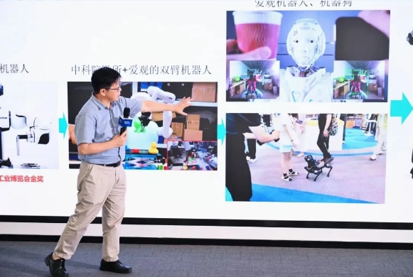 上海机器人产业技术研究院特聘研究员曹其新教授就《基于具身智能的泛在康养机器人技术研究》做了精彩的演讲,他表示人工智能的持续进步需要与物理世界的交互能力,而机器人的未来发展也离不开更高级别的智能化水平。曹教授还分享了人工智能在“银发经济”领域的发展潜力,并对未来康养机器人所能带来的情绪感知、心理陪伴、日常护理辅助等功能进行展望,展现出科技的温度。