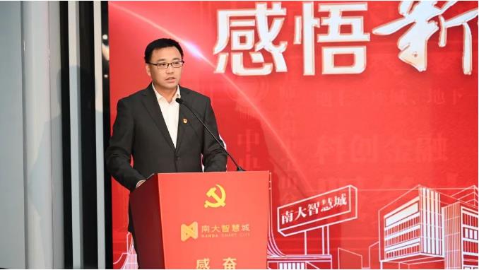 ▲南大开发公司党支部书记、总经理张鹏作开场演讲